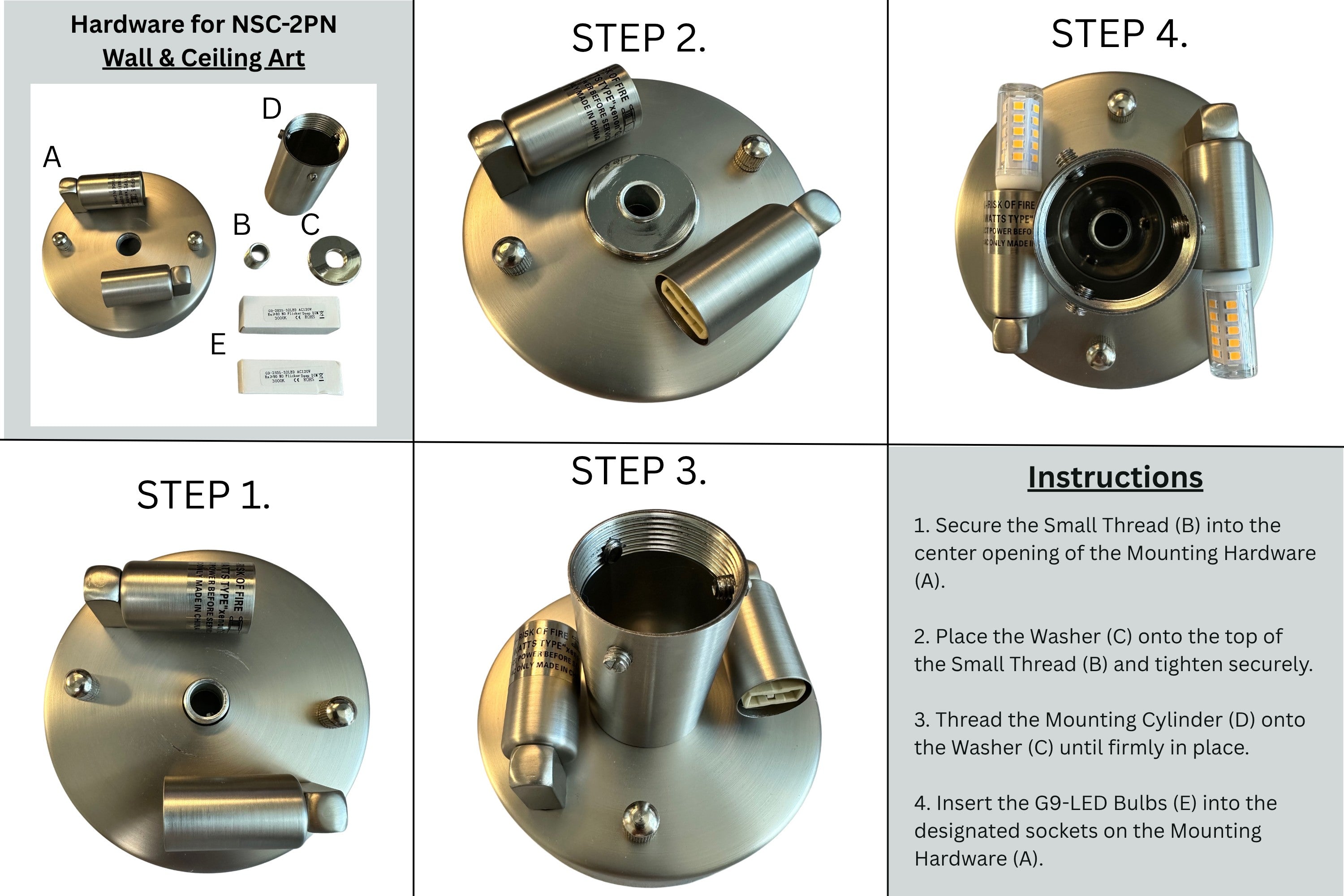 Illuminate your Viz Glass wall art beautifully and effectively with our specially designed Wall Art Sconce Hardware. This sleek, 5” canopy in an elegant satin-nickel finish perfectly complements your decorative glass pieces, bringing out their vibrant colors and textures.