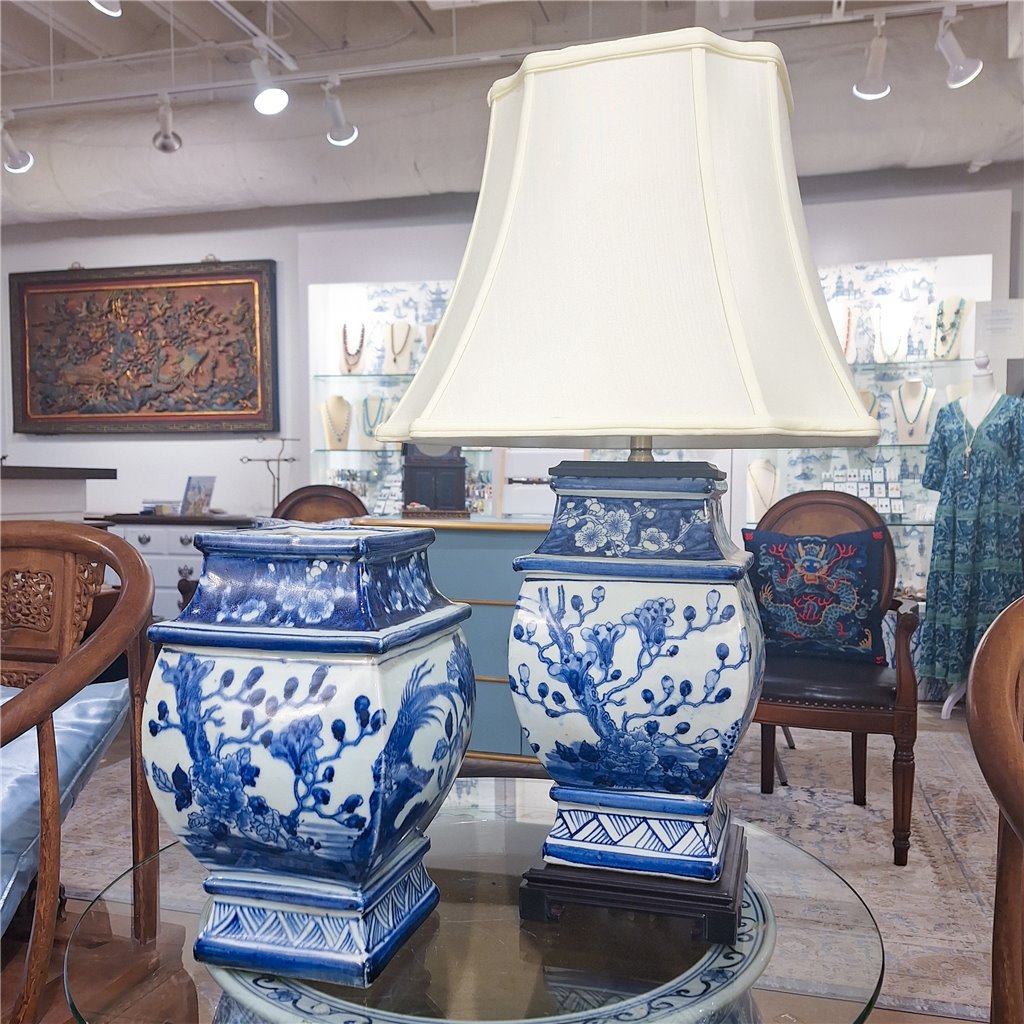 Danny's Fine Porcelain Sq Vase Lamp - Blue And White Bird (Shade: 122-15-Be) 50927-L