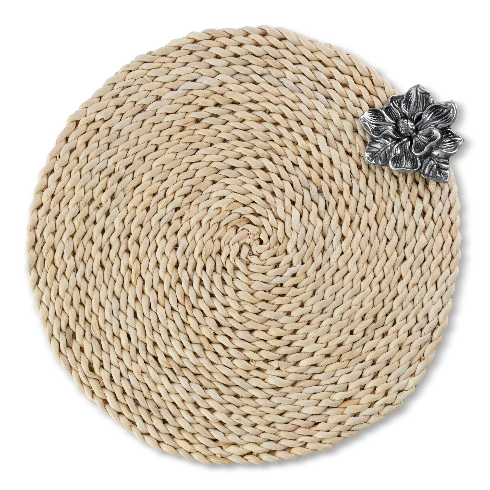 Twisted seagrass is wound like rope to create the natural spiral pattern of our placemats - a graphic way to set a tastefully casual table. A Magnolia flower medallion brings a classic botanical theme to your table.