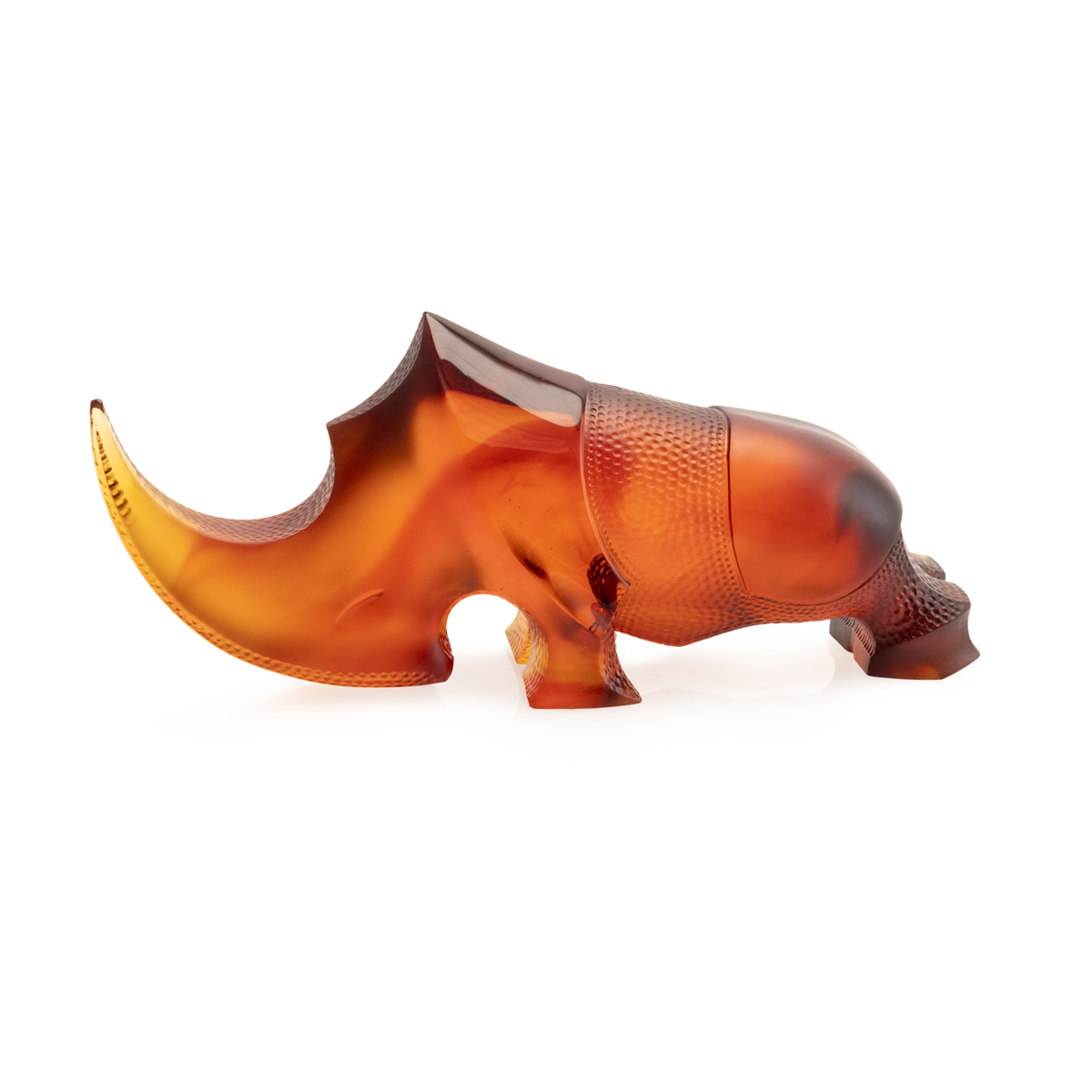 Daum Crystal Amber Ongava Rhinoceros by Gé Pellini