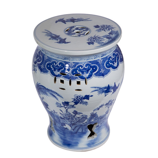Legend of Asia Bird Floral Drum Garden Stool - L