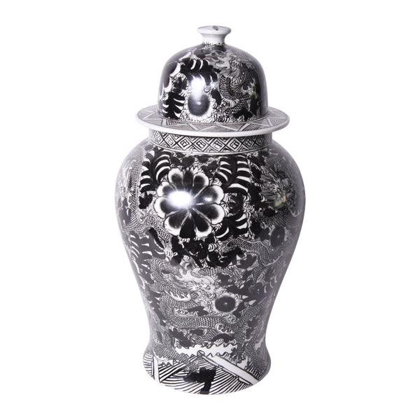 Legend of Asia Black Temple Jar W/ Dragon & Floral Motif