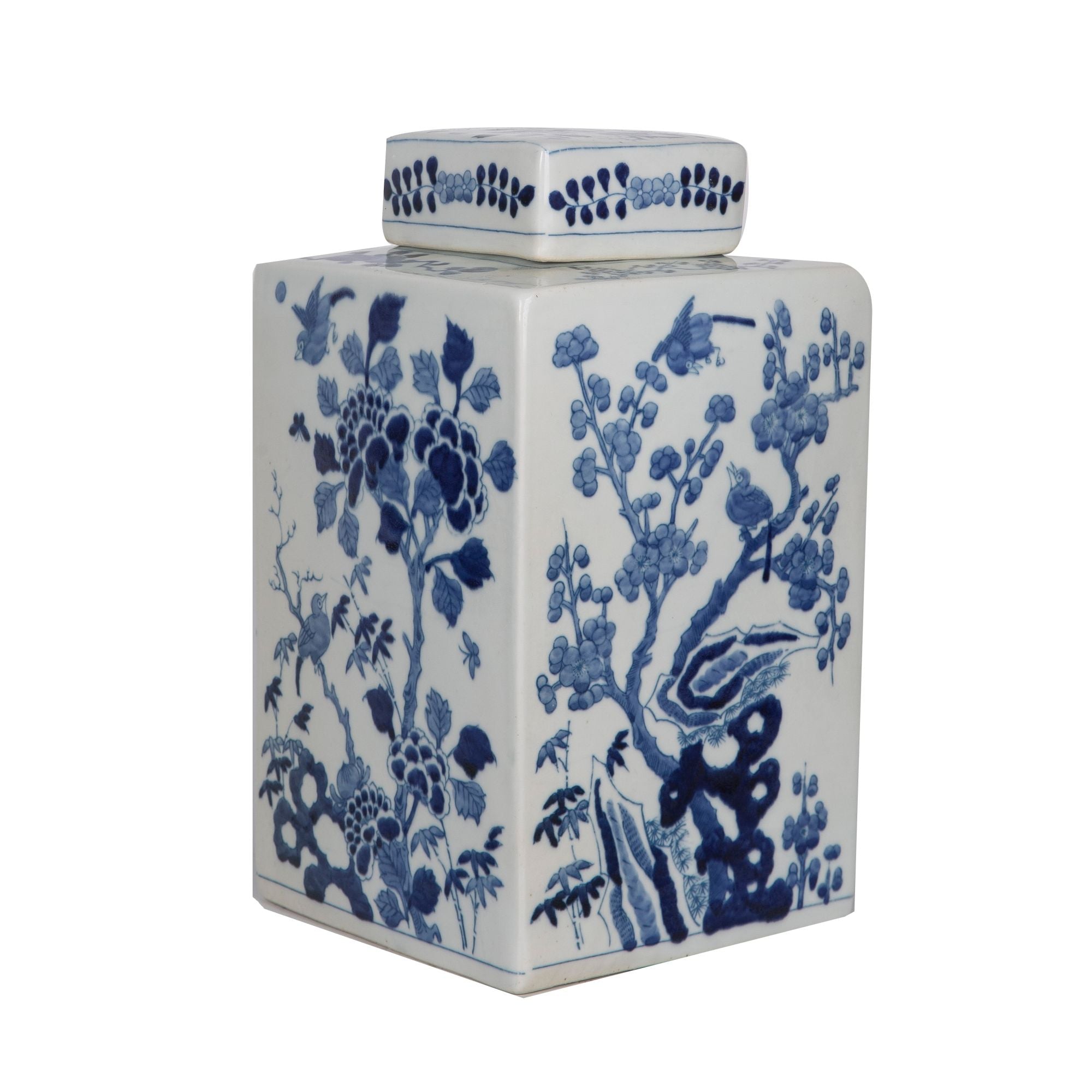 Legend of Asia Blue And White Square Tea Jar Bird Floral Motif