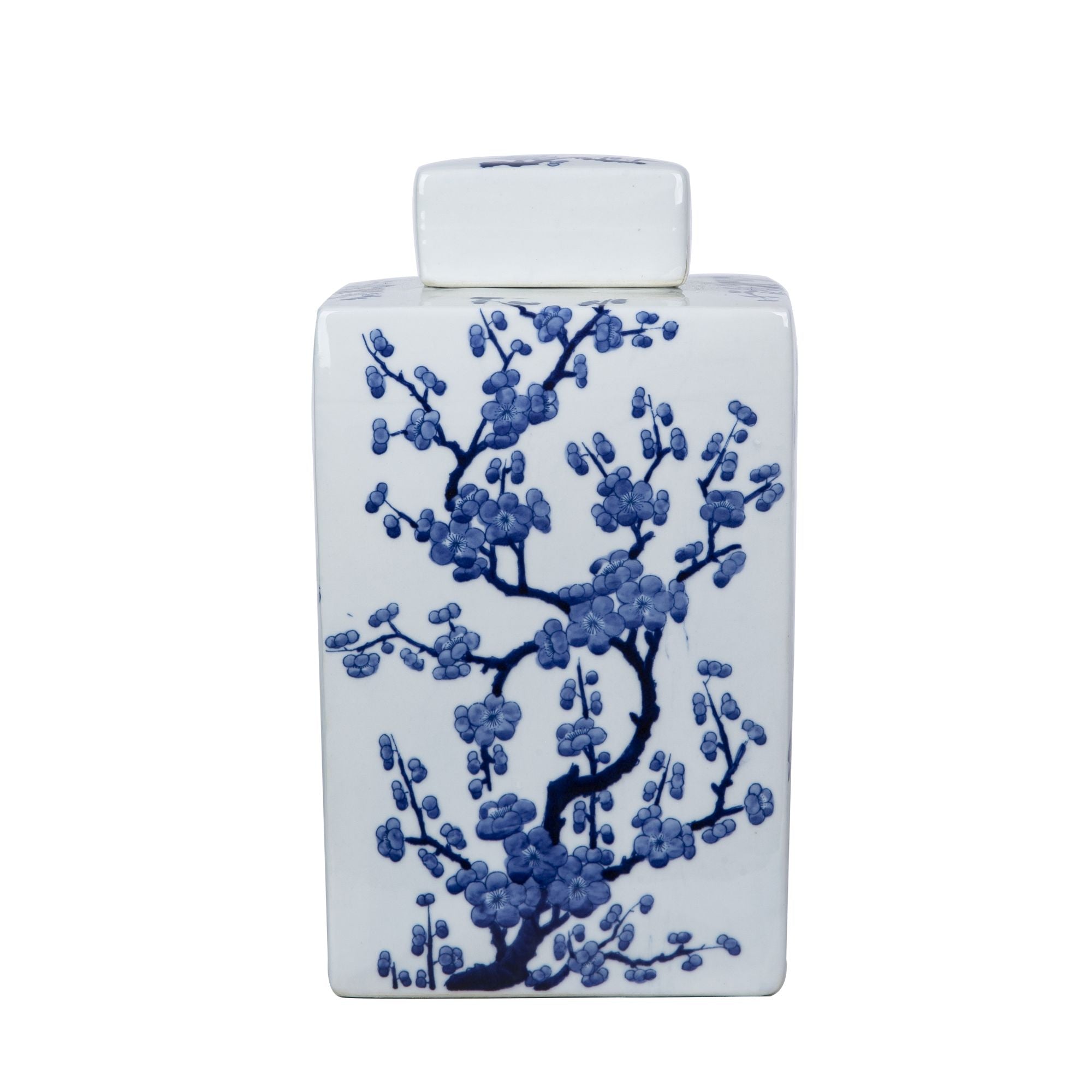 Legend of Asia Blue And White Square Tea Jar Weeping Plum