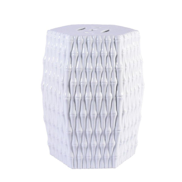 Legend of Asia White Hex Garden Stool Bamboo Carving