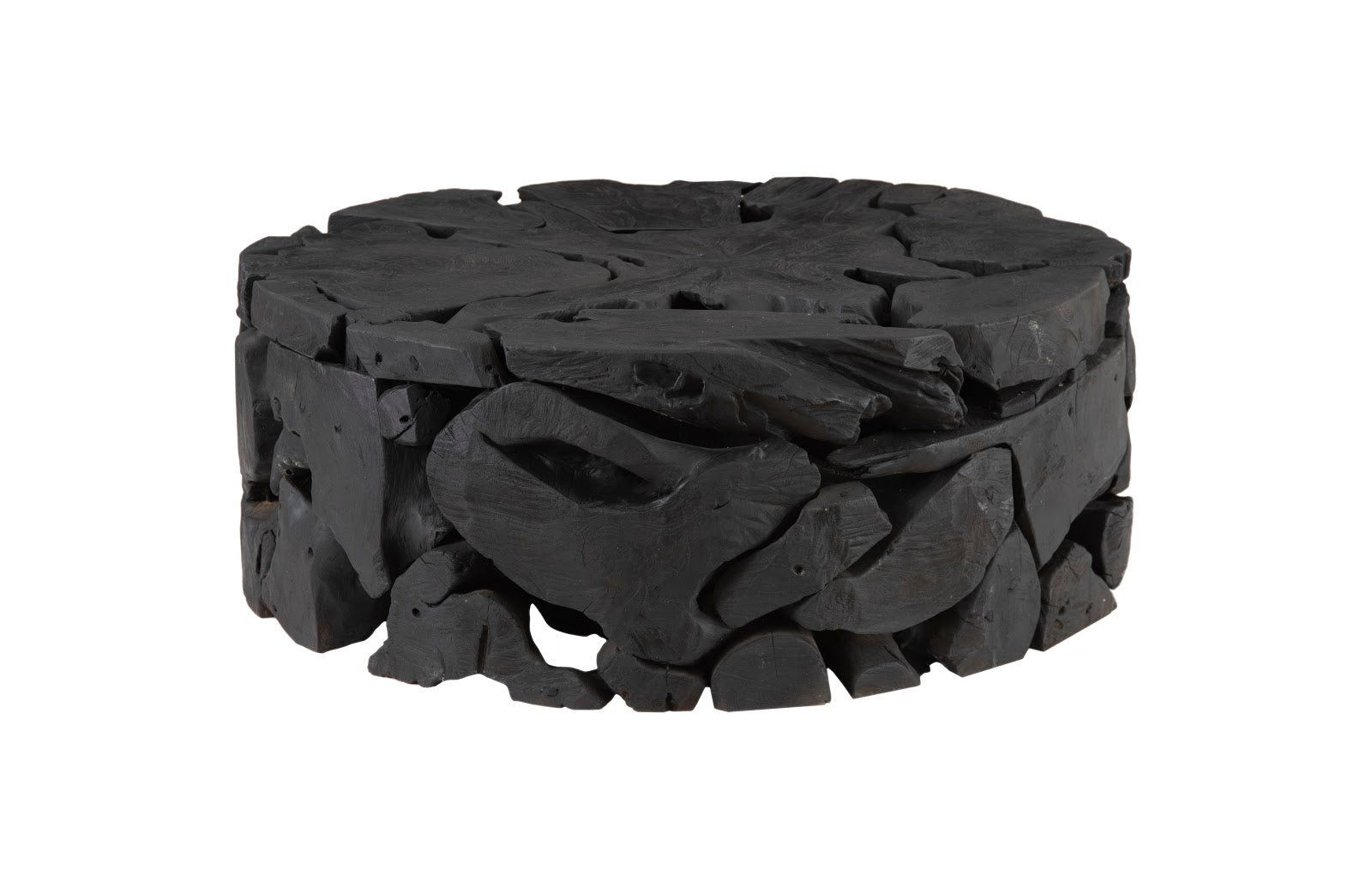Phillips Collection Teak Chunk Round Coffee Table, Black