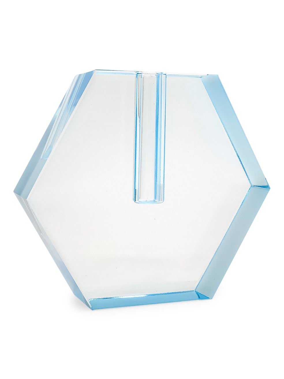 Tizo Blue Crystal Flat Hexagon Vase - Small