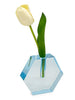 The Tizo Blue Crystal Flat Hexagon Vase - Small boasts a sleek hexagonal shape, perfect for displaying a single flower in a bold and contemporary manner.