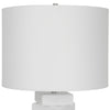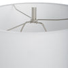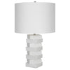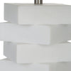 The Ascent Table Lamp Showcases A Unique Geometric Design With Alternating Stacked Blocks Constructed From A Man-made Ivory Stone That Accurately Replicate The Look Of Thassos Marble. Iron Details Are Finished In A Plated Brushed Nickel, Paired With A White Hardback Drum Shade.