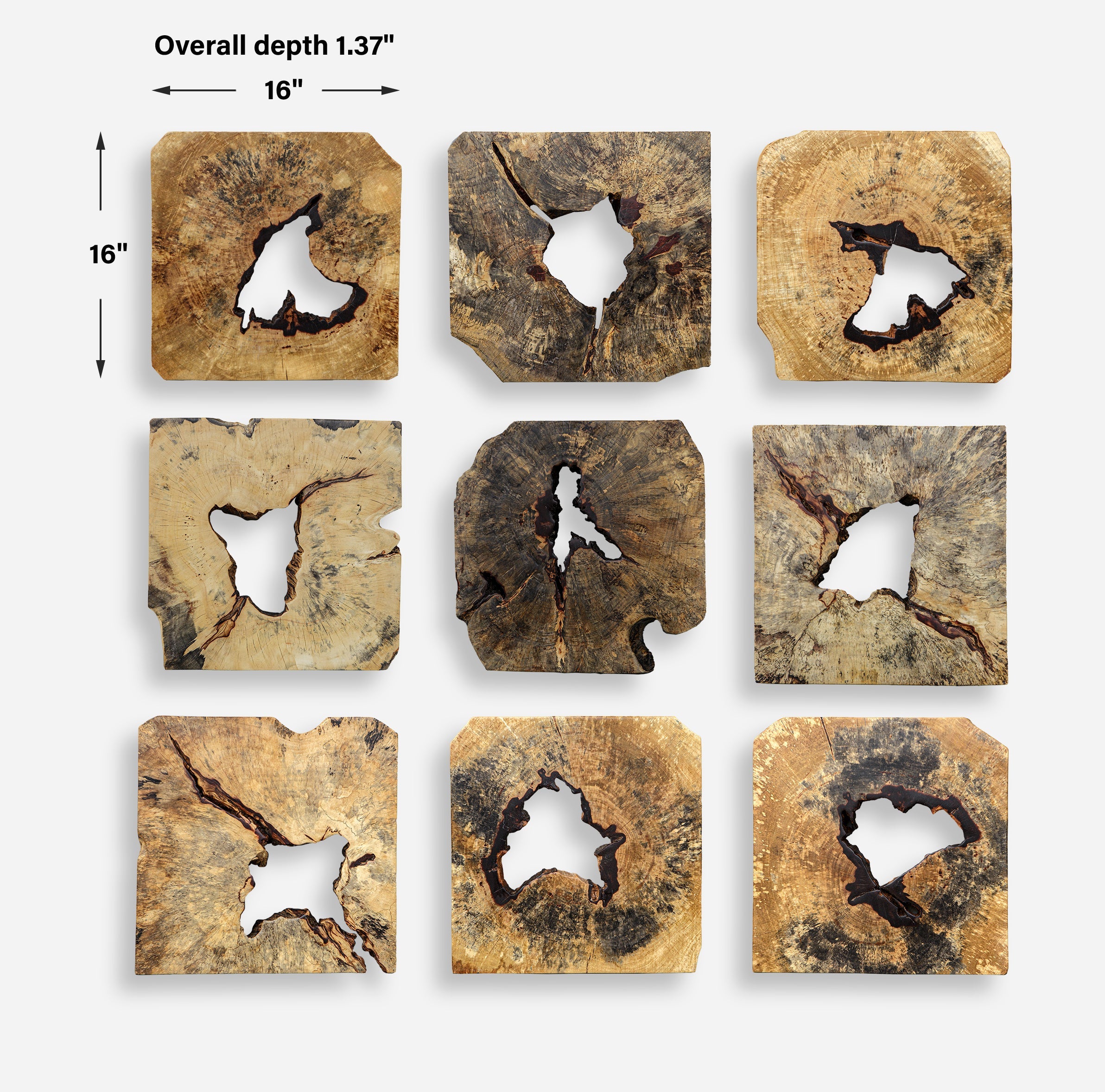 This Set Of Nine Wood Wall Pieces Is Crafted From 100% Tamarind Wood In A Natural Finish. Because Each Is Individually Handcrafted, Natural Variation Will Occur From Piece To Piece.