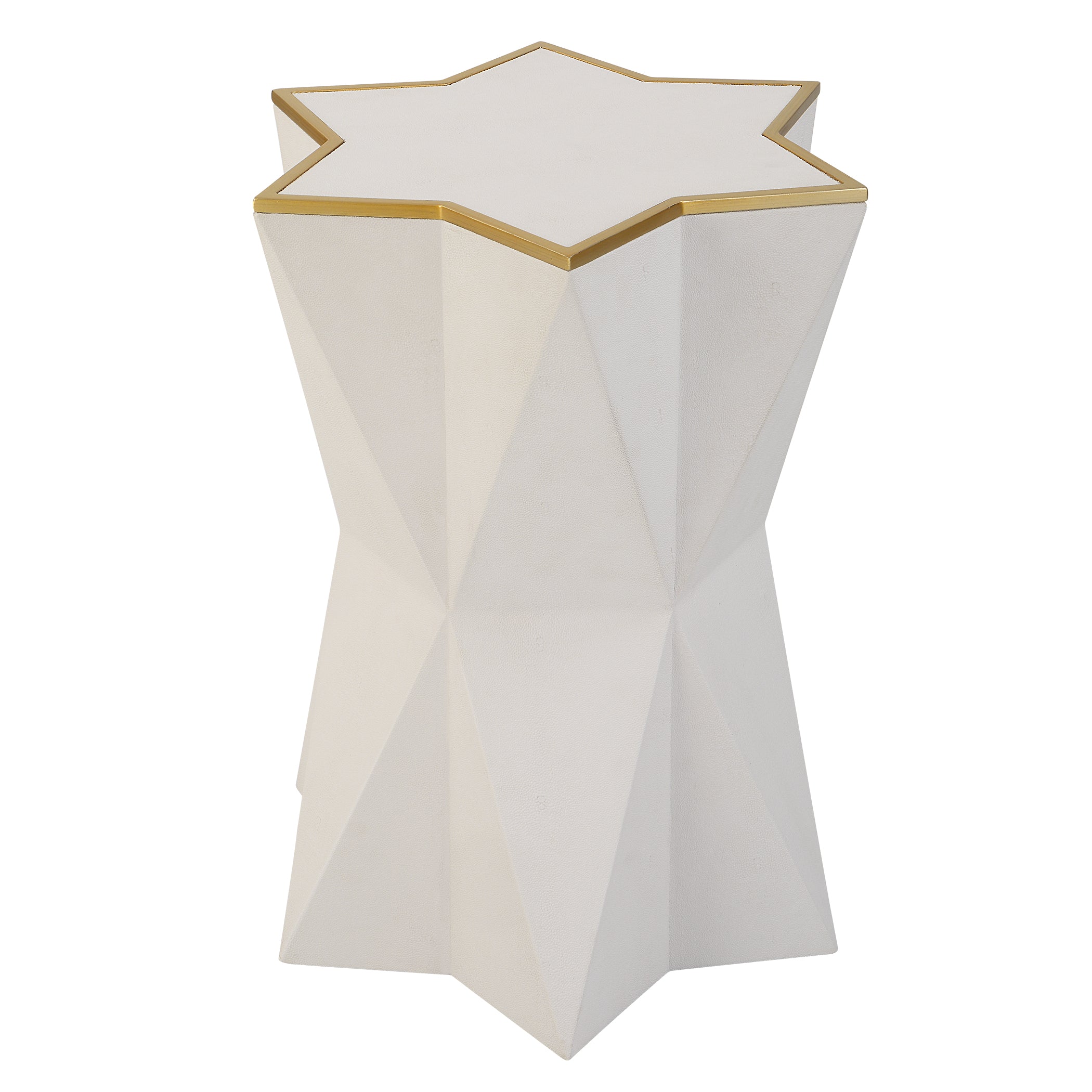 Unique Star Shaped Accent Table Features A Stylish White Faux Shagreen Wrap, Accented With A Hand Applied Gold Leaf Trim.