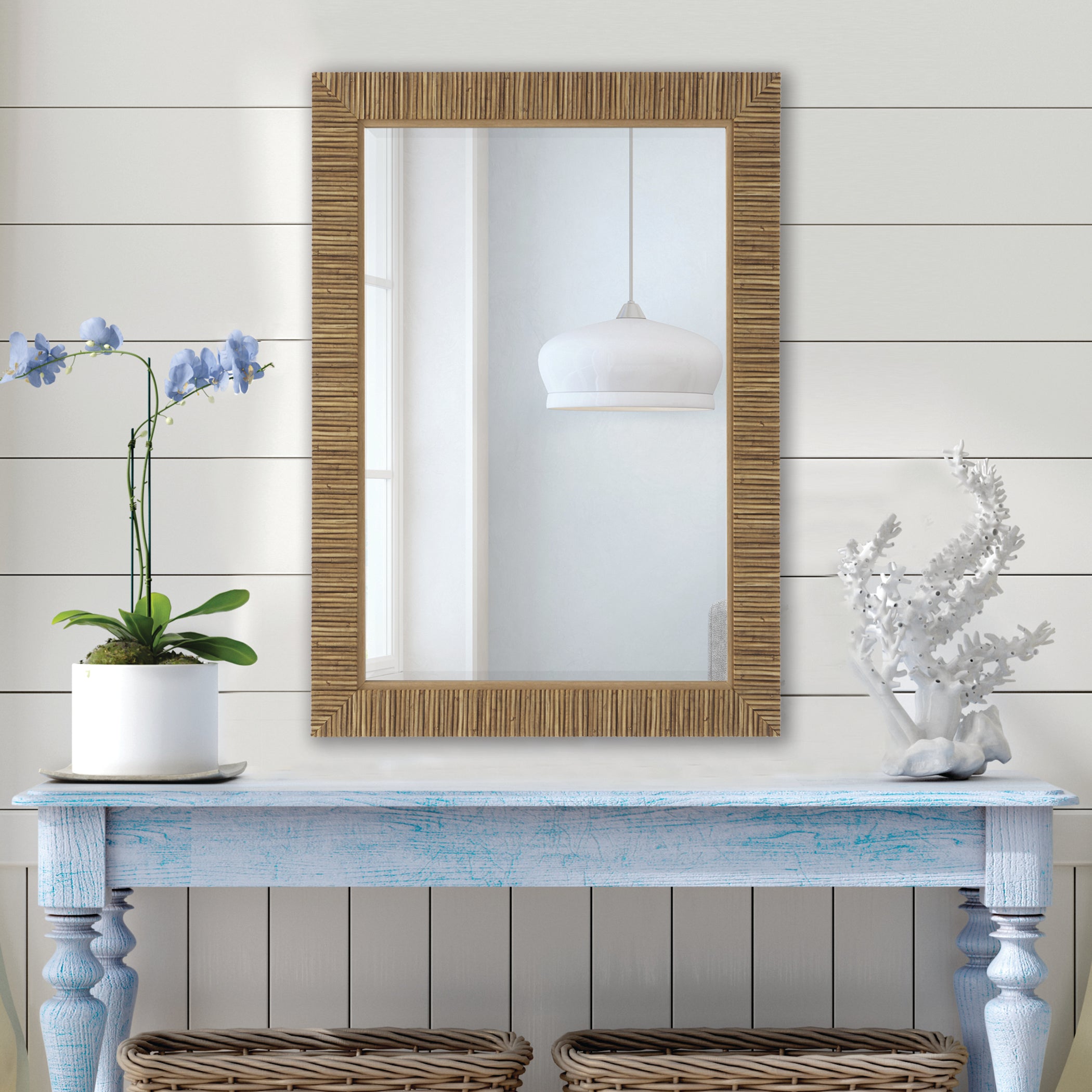 Put the finishing touch on your coastal decor with this natural looking rattan frame. Designed to resemble real rattan, this frame is constructed with a wrap that is truly authentic looking. Enjoy the warmth and texture of this welcoming and relaxing desiFinish/Frame Description: TEXTURED WRAP THAT HAS THE APPEARANCE OF REAL RATTAN, WITH A THIN LINER THAT COMPLEMENTS THE NATURAL COLORING. Material: PS MOULDING,MIRROR,MDF,PAPER Overall Depth: 1.65 Overall Width: 25 Overall Height: 35 Mirror/Glass Depth: 0.157 Mirror/Glass Width: 20 Mirror/Glass Height: 30