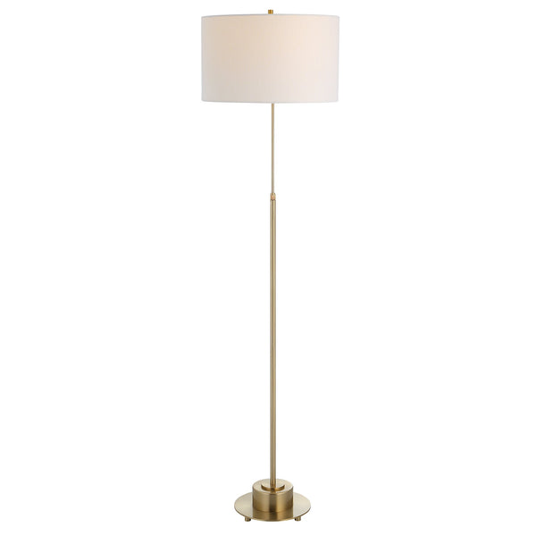 This Versatile Iron Floor Lamp Showcases A Slender Design Featuring An Adjustable Neck And Knurled Tightening Collar, That Allows It To Go From A 53" Tall Reading Lamp To A 70" Tall Floor Lamp, Finished In A Plated Brushed Antique Brass.