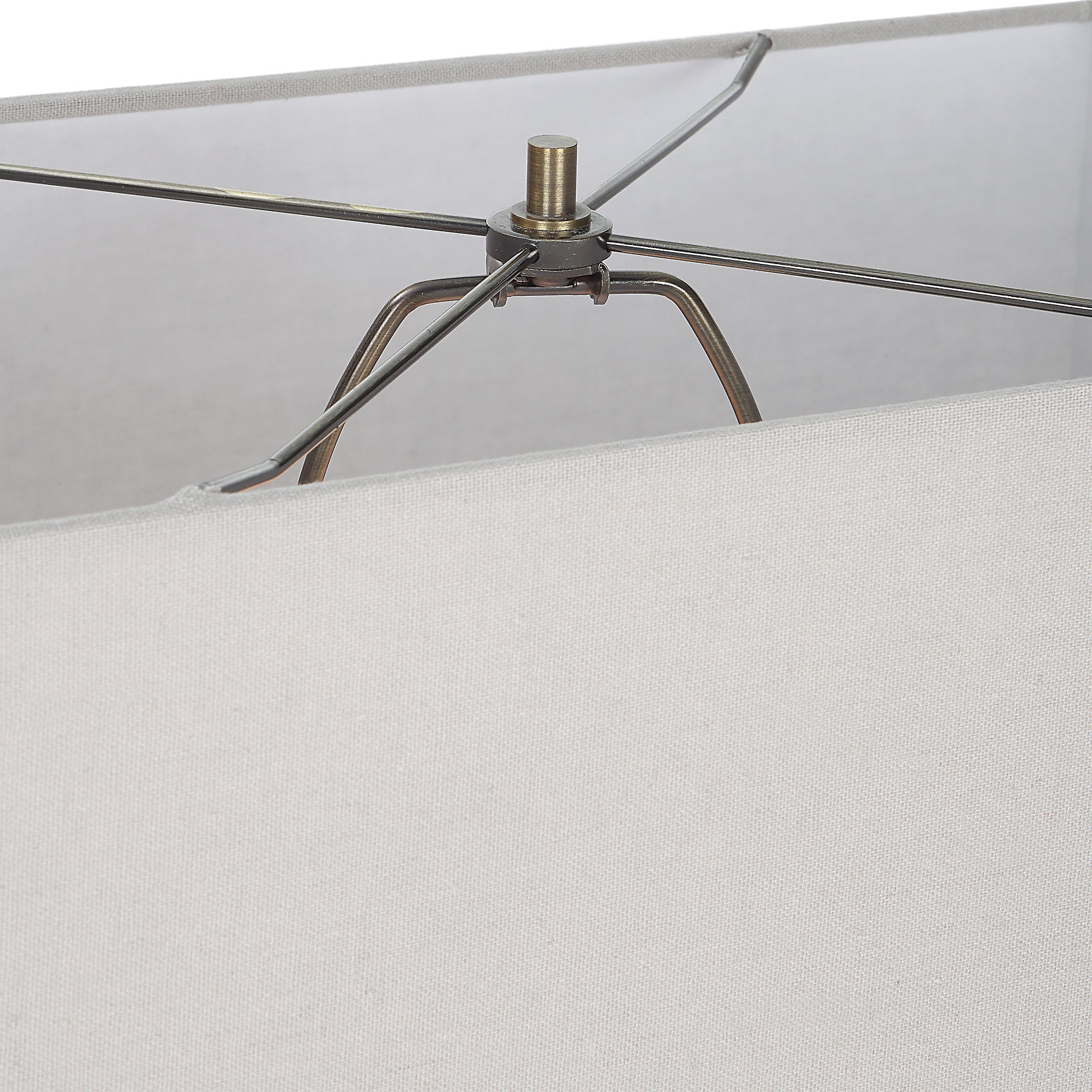 This Table Lamp Showcases A Petite, Tapered Iron Column In A Rustic Black Finish With Golden Highlights. The Rectangle Hardback Shade Is Covered In An Off-white Cotton Fabric.