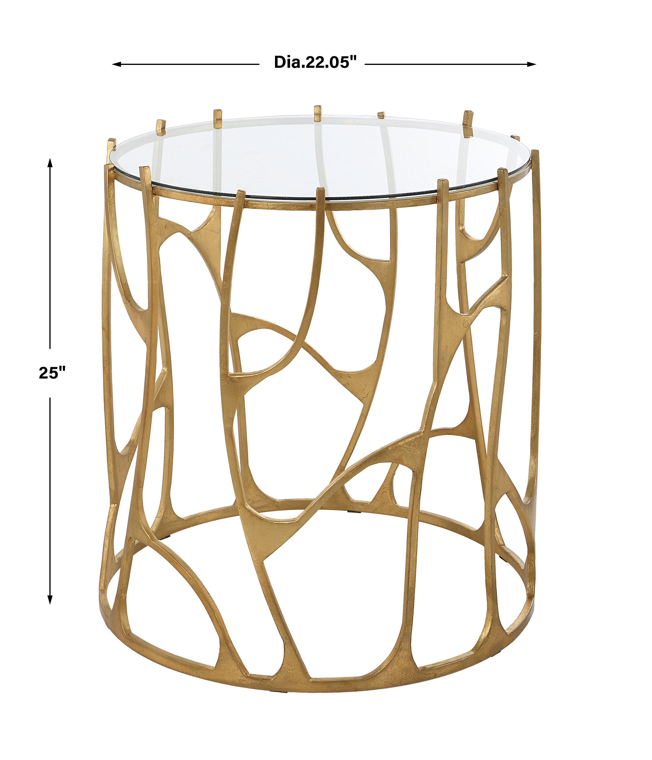 A Functional Table And Sculptural Work Of Art, The Ritual Side Table Offers The Best Of Both Worlds. The Organic Designed Base Is Crafted From Forged Iron In An Aged Gold Leaf Finish, Complemented By A Clear Tempered Glass Top.